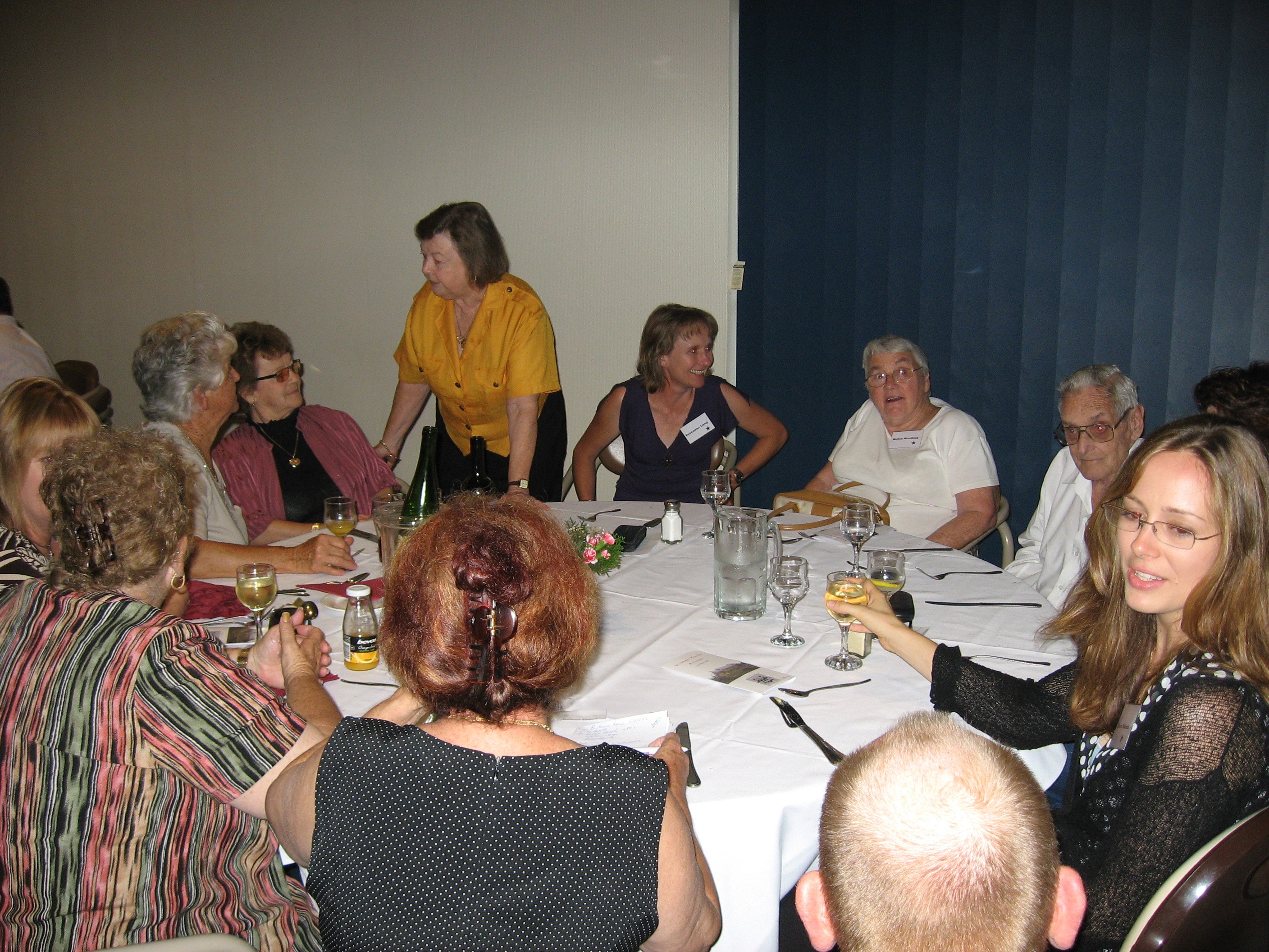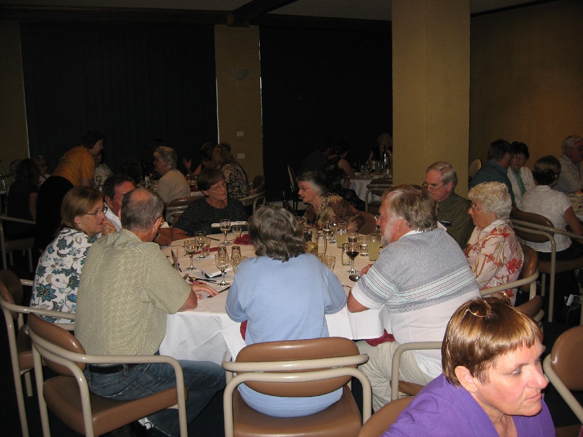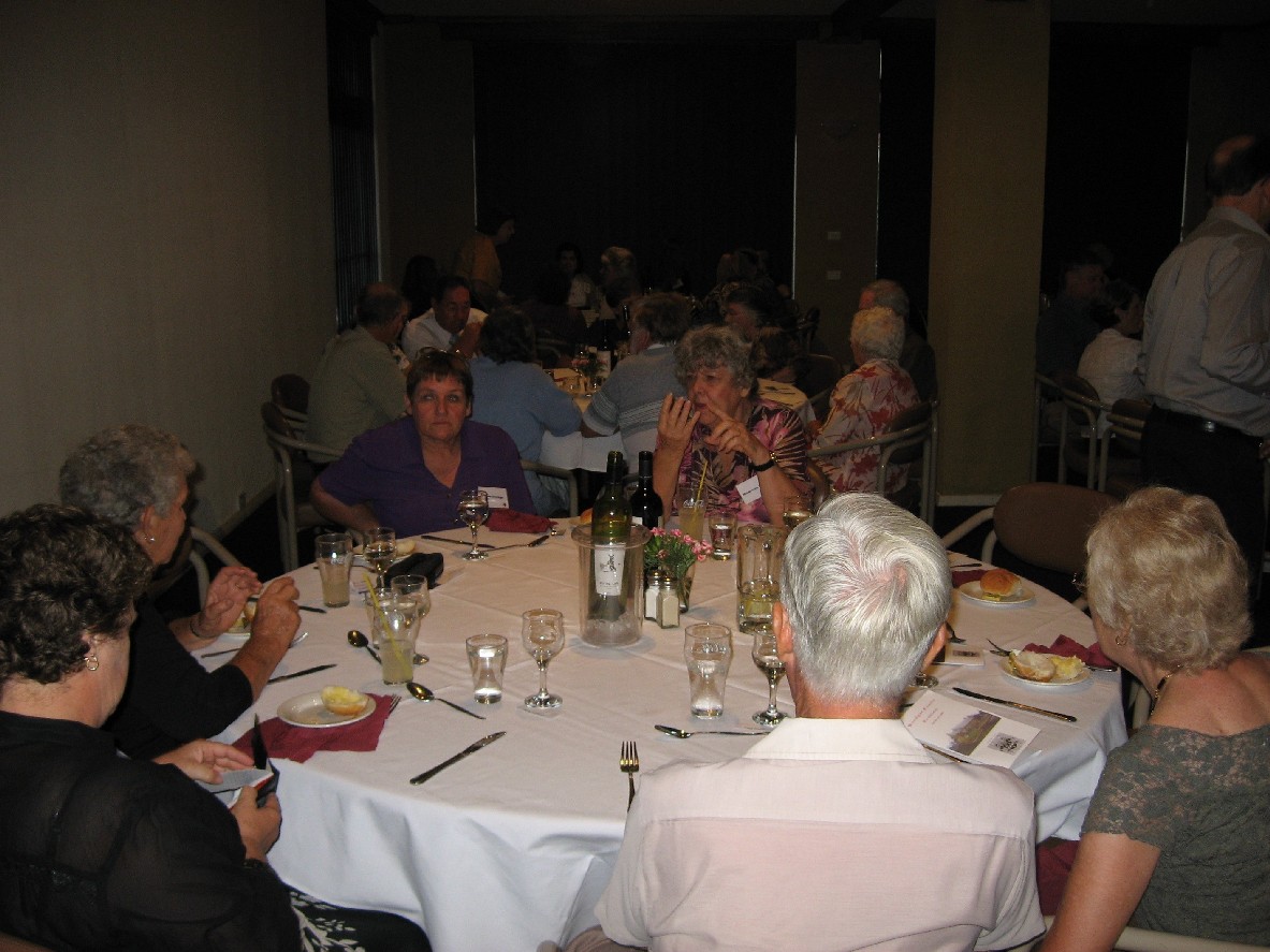 The room for the Reunion Dinner on Saturday night at the Moss Vale Services Club was filled and we were honoured to have the Mayor of Wingecarribee Shire, Councillor Gordon Lewis and Mrs Lewis and Mr Max Rogers from the Berrima Historical Society as our guest for the evening. Colin Gourley acted as MC for the evening and welcomed everyone to the dinner. The Roll was called and descendants were asked to stand to show which branch of the family they belonged, The majority present were from Robert Woodger, followed by Jesset with the two representatives of Jane Woodger getting a cheer. Following this the MC invited the Mayor to speak A singular honour for the evening was bestowed by Councillor Lewis donning his chain of office at the start of his address of welcome to those present. Mr Rogers followed the Mayor and spoke about the Berrima Historical Society and its collections which do have papers relevant to our family and issued an invitation to everyone to visit the Society's rooms opening especially for the following afternoon.