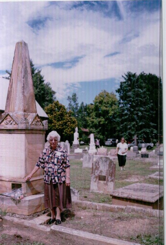Jean Young stands beside the Woodger Family Grave at All Saints Sutton Forest, NSW. Jean unveiled the plaque commemorating her ancestor John Woodgers arrival in NSW on 24th January 1827